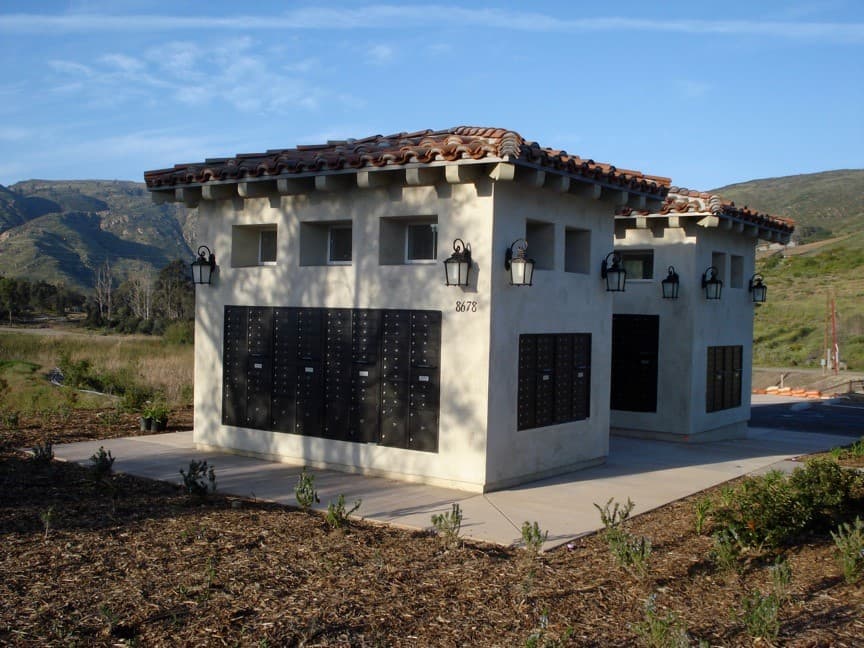 Wall-mounted mailbox options are available, but are typically only used when there is a single mail center for single-family home development. In these instances, a custom kiosk structure is usually built, and the mailboxes are located in a convenient location that is central to the community.