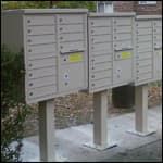 ![]() Pedestal Installation Other mailboxes are installed free-standing on a pedestal. Older mailboxes (such as NDCBUs) have been replaced by CBUs (cluster box units) and pedestal-mount 4C mailboxes. |